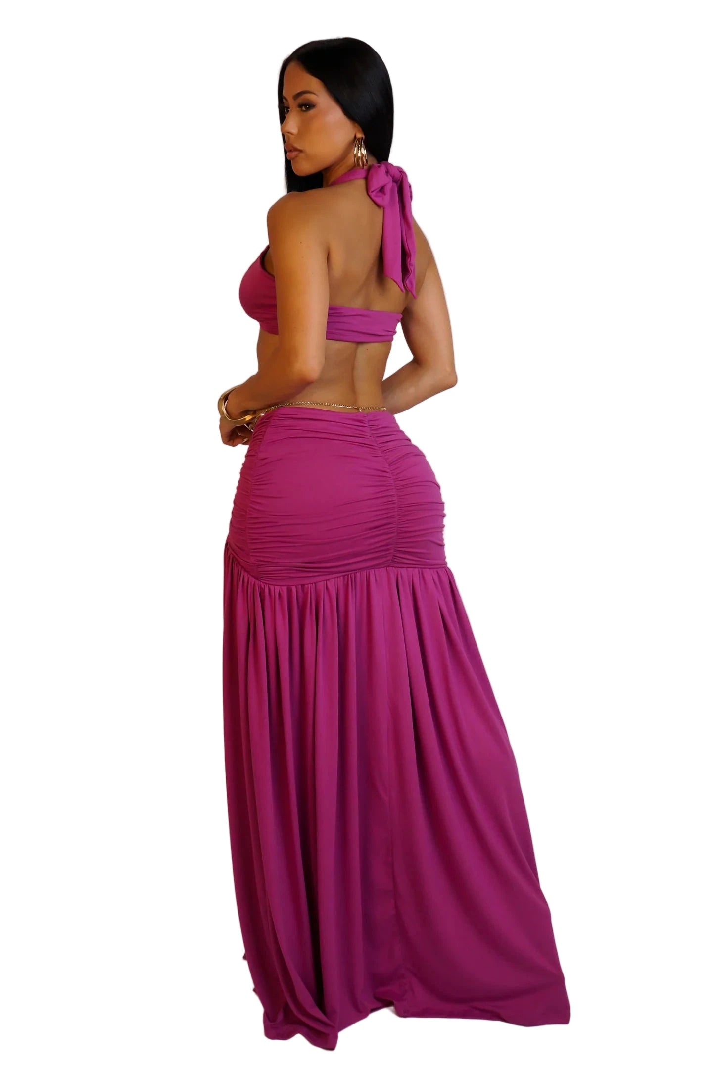 Elevate your wardrobe with our Belle de Nuit skirt set in magenta. Crafted from 95% POLY and 5% SPANDEX, this set offers minimal stretch and a flawless fit. The model wears size Small and the set comes in a stunning shade of pink. The perfect addition to your luxurious and exclusive collection.