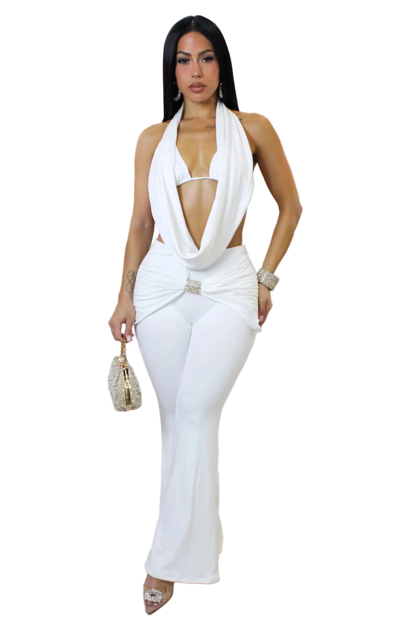 The C’est la vie pant set is the perfect addition to your wardrobe. Made with 95% poly and 5% spandex, it offers a comfortable and flexible fit. The white color adds a touch of elegance to any look. Available in size small, it's suitable for all body types.